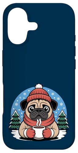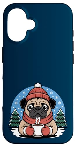 Chocolat Chaud au café Carlin d'hiver Coque pour iPhone 16 Plus