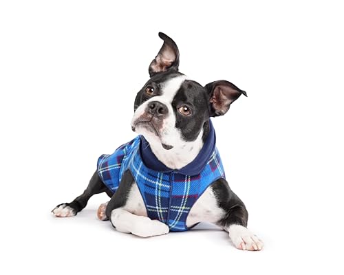 Gold Paw Duluth Manteau en Polaire Double pour Chien - Doux et Chaud - Extensible dans Les 4 Sens - Lavable en Machine, Toutes Saisons, Motif à Carreaux Bleu/Bleu Marine, Taille 8