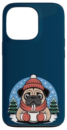 Chocolat Chaud au café Carlin d'hiver Coque pour iPhone 13 Pro