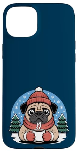 Chocolat Chaud au café Carlin d'hiver Coque pour iPhone 15 Plus