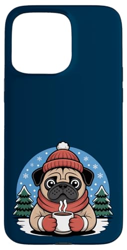 Chocolat Chaud au café Carlin d'hiver Coque pour iPhone 15 Pro Max