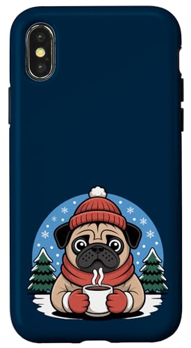 Chocolat Chaud au café Carlin d'hiver Coque pour iPhone X/XS