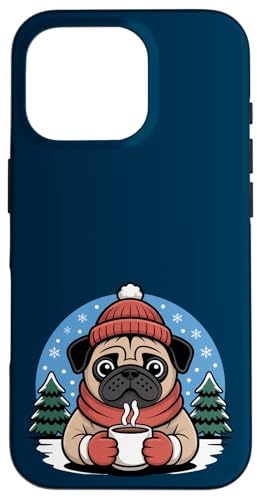 Chocolat Chaud au café Carlin d'hiver Coque pour iPhone 16 Pro