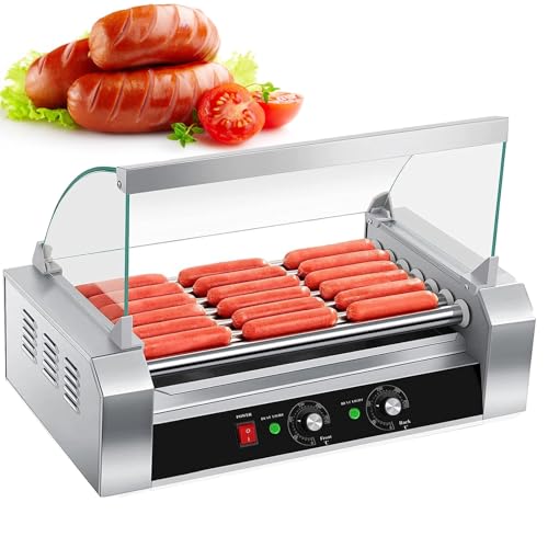 Machine commerciale pour faire des saucisses pour hot-dogs, grill électrique pour hot dogs avec couvercle, chauffe-saucisses en acier inoxydable antiadhésif avec 7 rouleaux, double contrôle de