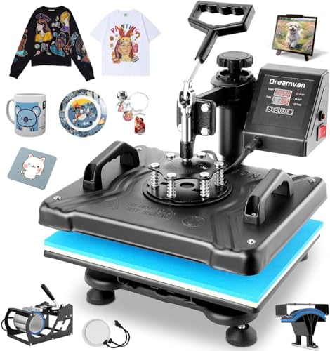 Heat Press 5 en 1 Presse à chaleur Machine 30 x 38 cm/15 "x12" Imprimante de transfert par sublimation à coque pliante Chauffage rapide Contrôle numérique précis de la température Presse chauffante en
