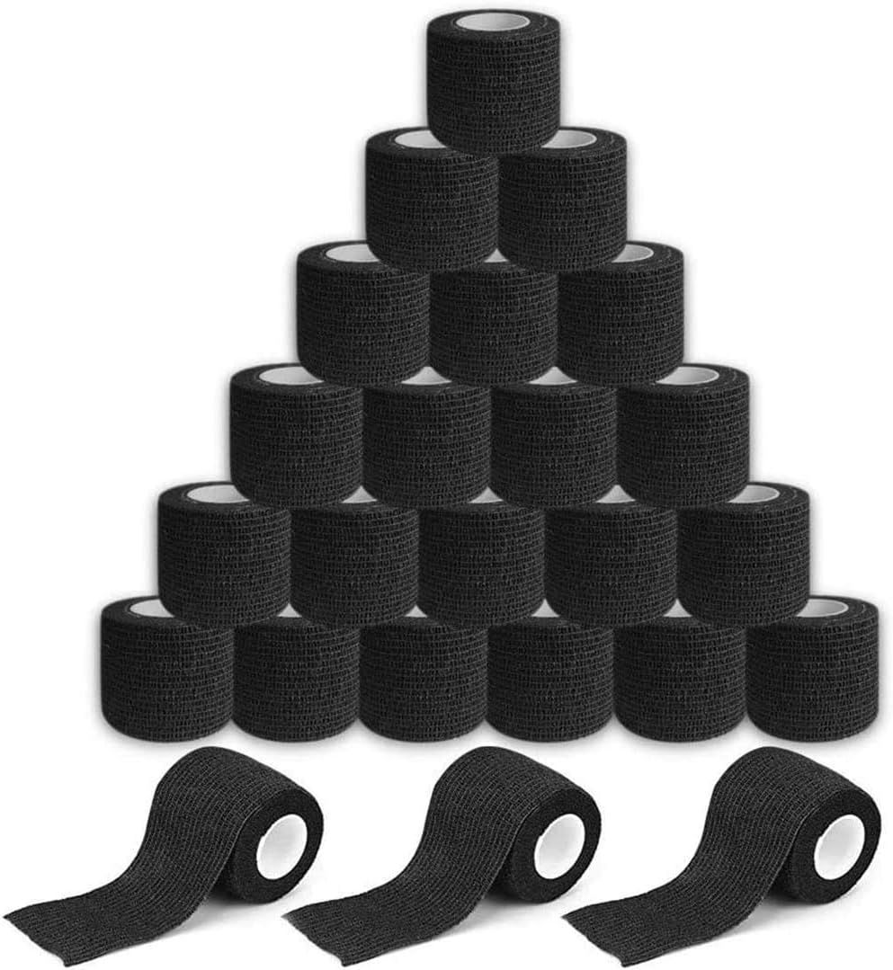 Ruban adhésif de tatouage- 24PCS Black Tattoo Grip Tape Ruban adhésif auto-adhésif élastique Rouleau de bandage pour machine de tatouage Grip Accessoires Fournitures de tatouage