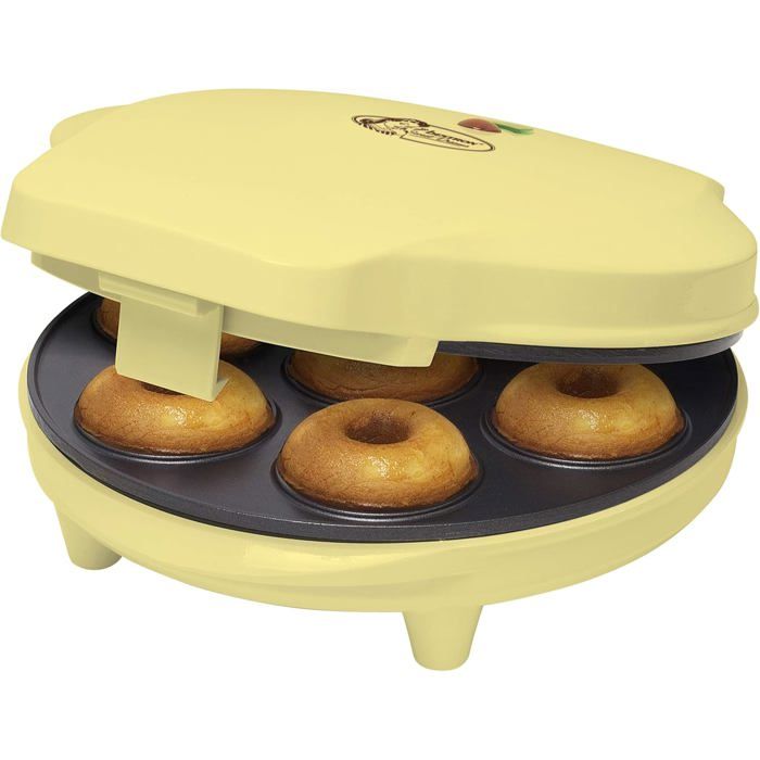 Bestron Appareil à donuts au Design Rétro, Mini-Machine à Donuts pour 7 petits Donuts, inclut Témoin de Cuisson & Revêtement Antiadhésif, 700 Watts, Sweet Dreams Collection, Couleur: Jaune