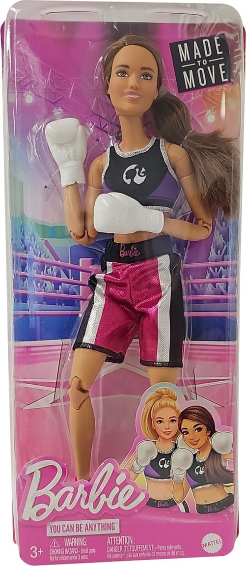 Barbie Made to Move - Boxeuse avec gants de boxe et uniforme de boxe - Poupée avec 22 articulations pour un plaisir de jeu réaliste, enfants à partir de 3 ans