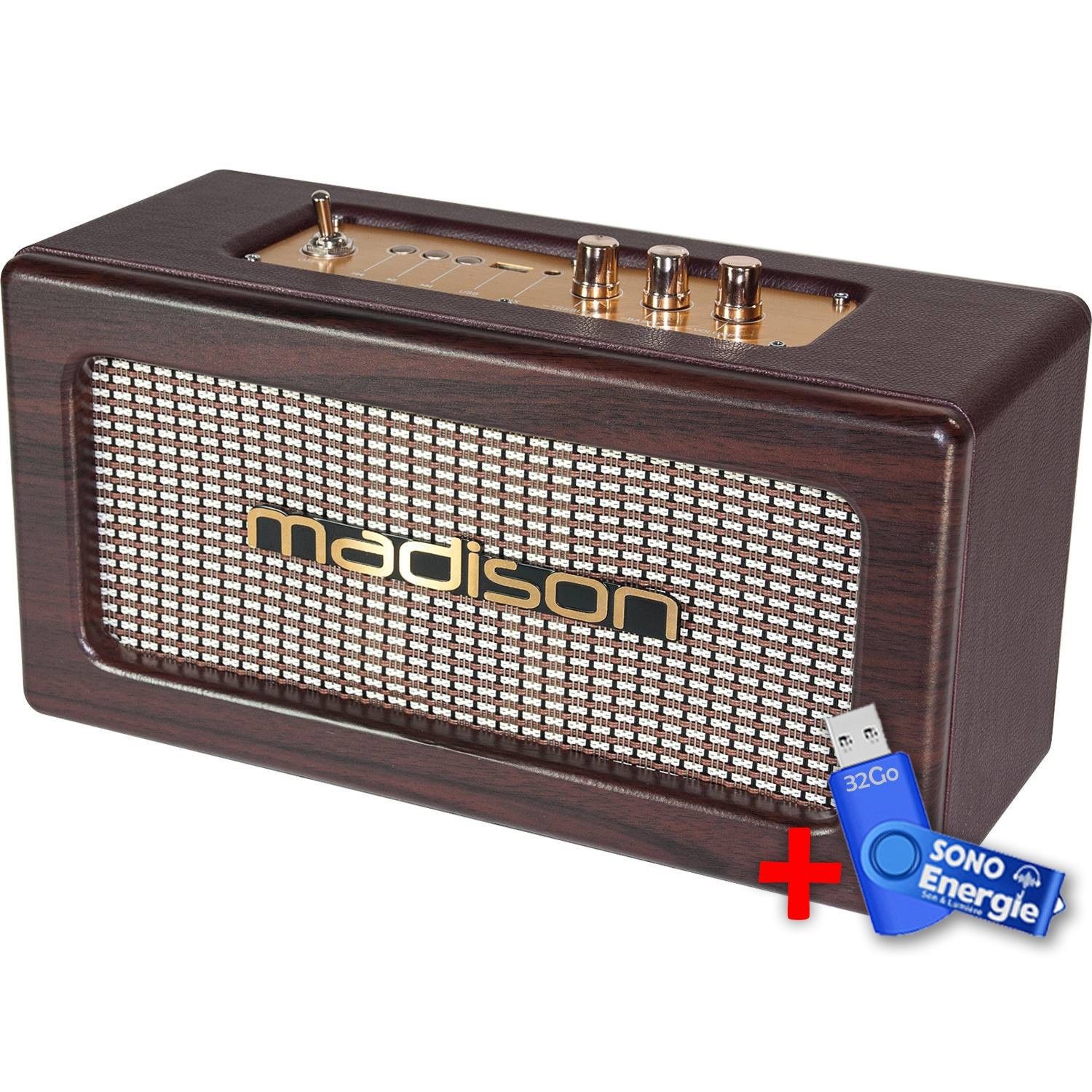 Enceinte "Vintage" autonome avec USB/BLUETOOTH 2x10W - Madison FREESOUND-VINTAGE-WD+Clé USB 32G