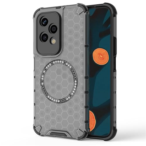 Ysnzaq Magnétique Coque pour Honor 200 Lite 6.7" Compatible avec MagSafe, Anti-Yellowing Antichoc Très Mince Transparent PC + TPU Bumper Coque pour Honor 200 Lite Honeycomb Black