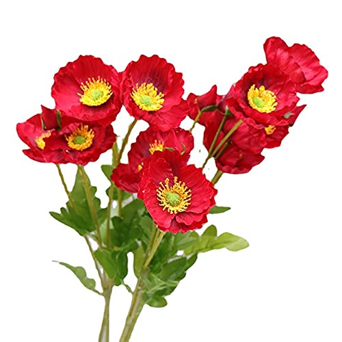 HAOSHICS Lot de 6 coquelicots artificiels, camomille, coquelicots au toucher réaliste pour maison, mariage, fête, bureau, magasin, hôtel, décoration florale à faire soi-même, décoration (rouge)
