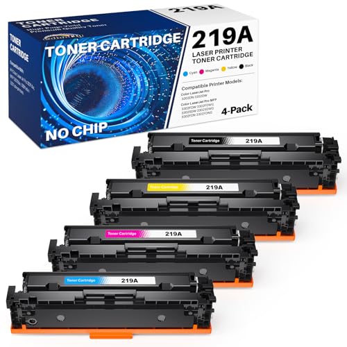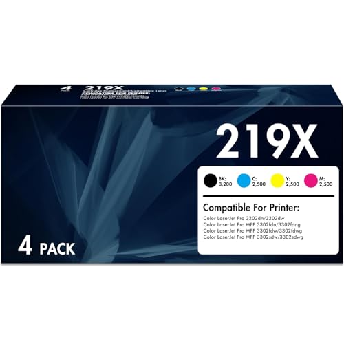 219X Toner Cartridge Compatible pour HP 219X 219A (avec Puce) pour Color LaserJet Pro MFP 3302FDW 3302SDW 3302FDN 3302FDNG 3302FDWG 3302SDWG 3202DN 3202DW, Noir Jaune Cyan Magenta Pack de 4