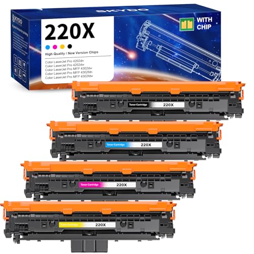 Skydo 220X 220A Toner Compatible pour HP 220X 220ACartouche de Toner Compatible pour Color Laserjet Pro MFP 4302dw 4302fdw 4202dw 4202dn 4302fdn Noir Cyan Jaune Magenta, W2200X W2201X W2202X W2203X