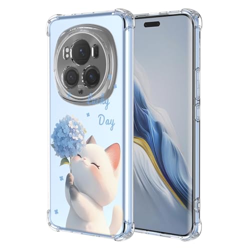 UPLAI Coque pour Honor Magic 6 Pro (Magic6 Pro), Très Mince Souple TPU Silicone Antichoc Housse avec 3D Motif de Peinture, Élégant Simple Mignon Transparent Étui.Chat