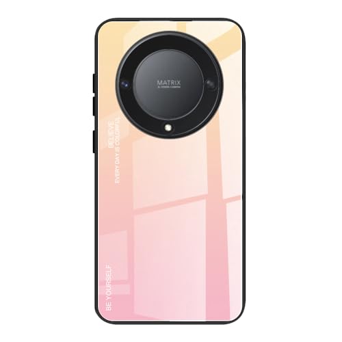Dedux Coque pour Honor Magic 6 Lite 5G (Magic6 Lite) / X9b, Etui Dégradé de Couleur Verre Trempé Back Coque + Souple Silicone TPU Case Cover Protection Antichoc Housse (Blond/Rose)