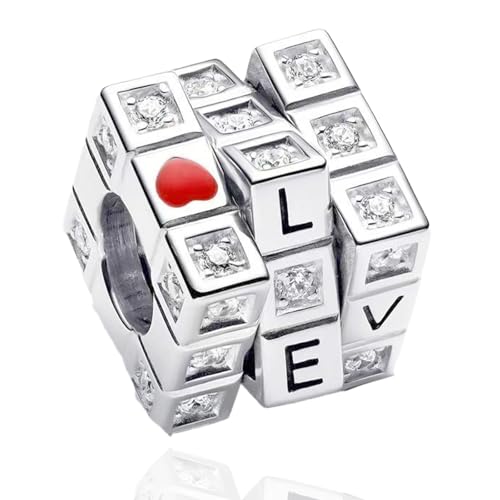 Rimgoris Charm en argent sterling 925 pour bracelets et colliers pour femmes Rubik's Cube Heart LOVE Breloques cadeaux de Saint-Valentin en zircone cubique 5A pour femmes