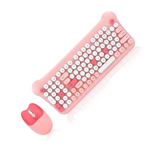TEMOOUES Ensemble Clavier et Souris sans Fil, 100 Touches, Clavier Rond avec pavé numérique, Machine à écrire, Souris de Jeu pour PC et Ordinateur Portable Keyboard Combo