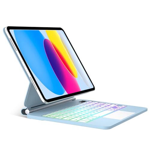 JADEMALL Magic Keyboard pour iPad A16 11ème/10ème Génération 2025/2022, AZERTY Français Clavier avec Pavé Tactile Bluetooth Rétroéclairé pour iPad A16 11 2025/10 EME Generation 10.9" 2022, Ciel Bleu