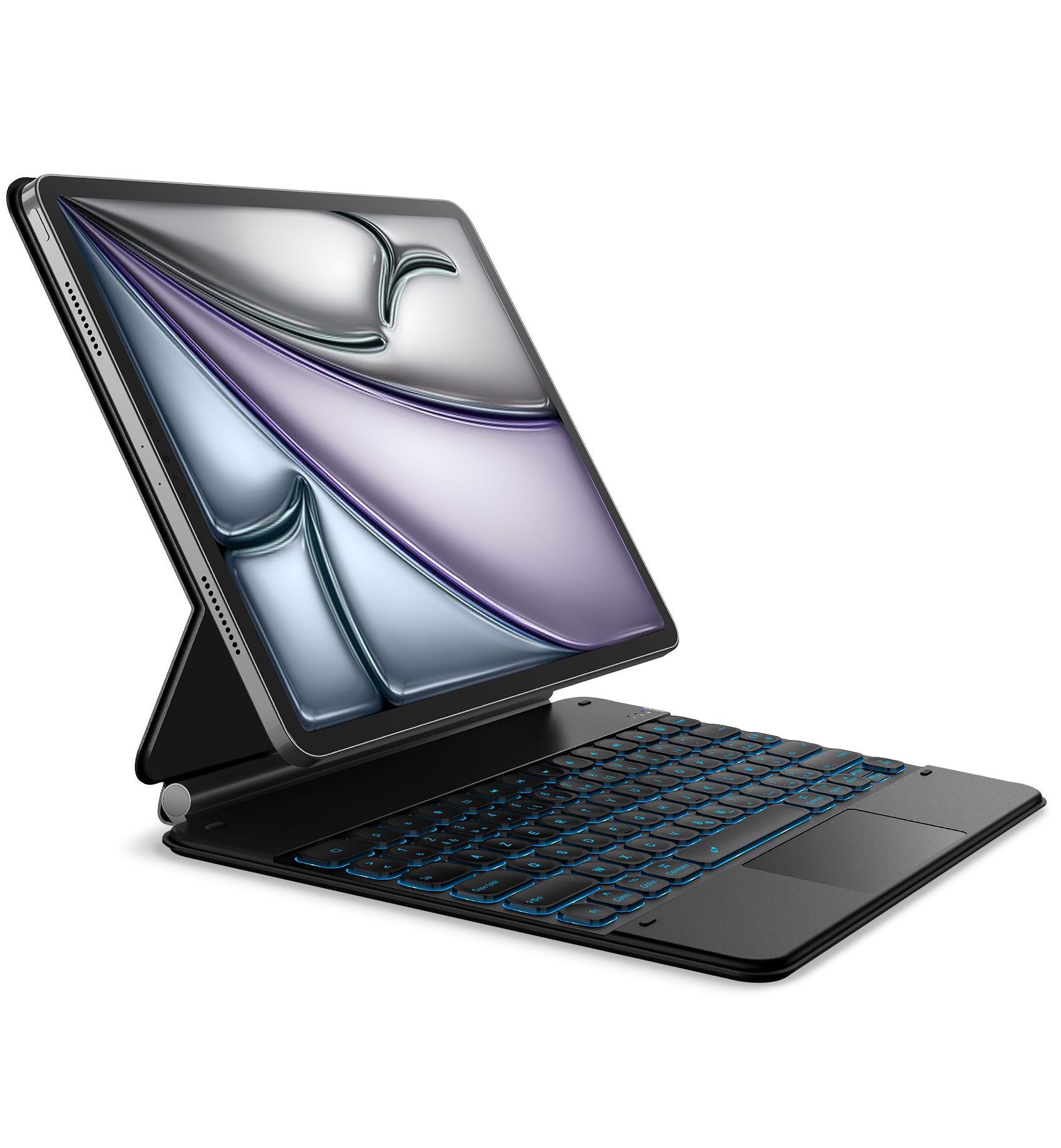 RAYMCRAFT Clavier pour iPad Air 13 Pouces (M3/M2, 2025/2024), Clavier Magic Keyboard pour iPad Pro 12,9 Pouces (6/5/4/3 Gen), Rétroéclairage 11 Couleurs avec Attache Stylet, Pavé Tactile, Bleu Acier