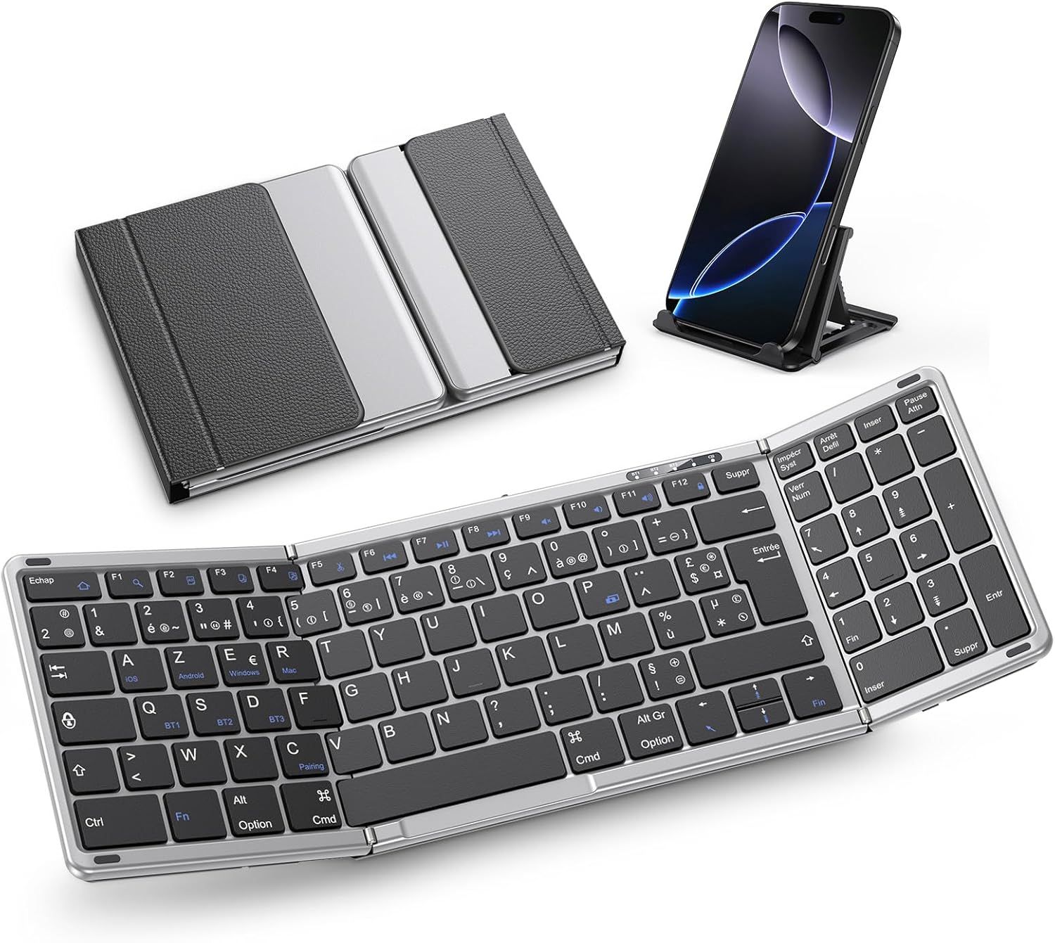 Clavier Bluetooth Pliable avec Pavé Numérique, Clavier sans Fil AZERTY Rechargeable, Pleine-Taille, Portable Keyboard pour Android Windows iOS Mac iPad Tablette PC, Gris sidéral