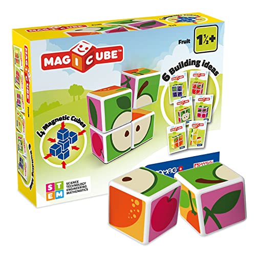 Geomag - MAGICUBE Fruit - 4 Cubes Magnétiques - Blocs de Construction Éducatif pour Enfants dès 18 Mois - avec 6 Idées de Construction - Développe la Créativité et la Dextérité - Fabriqué en Suisse