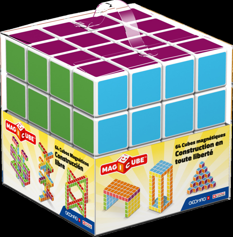 Geomag - MAGICUBE 64 Pièces - Blocs de Construction Magnétiques Multicolores à Assembler - pour Enfants dès 1 an - 6 Couleurs - Fabriqué en Suisse -Jouet Educatif - Jeux Construction Magnétiques