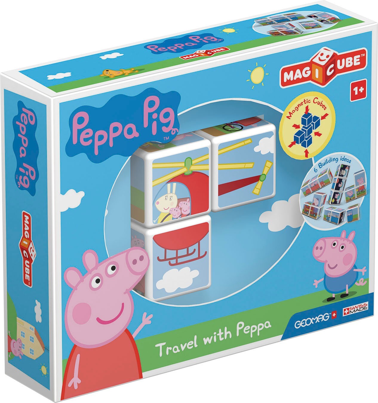 Geomag MagiCube 049 Peppa Pig - Travel with Peppa - Constructions Magnétiques et Jeux Educatifs, 3 Cubes Magnétiques Multicolore