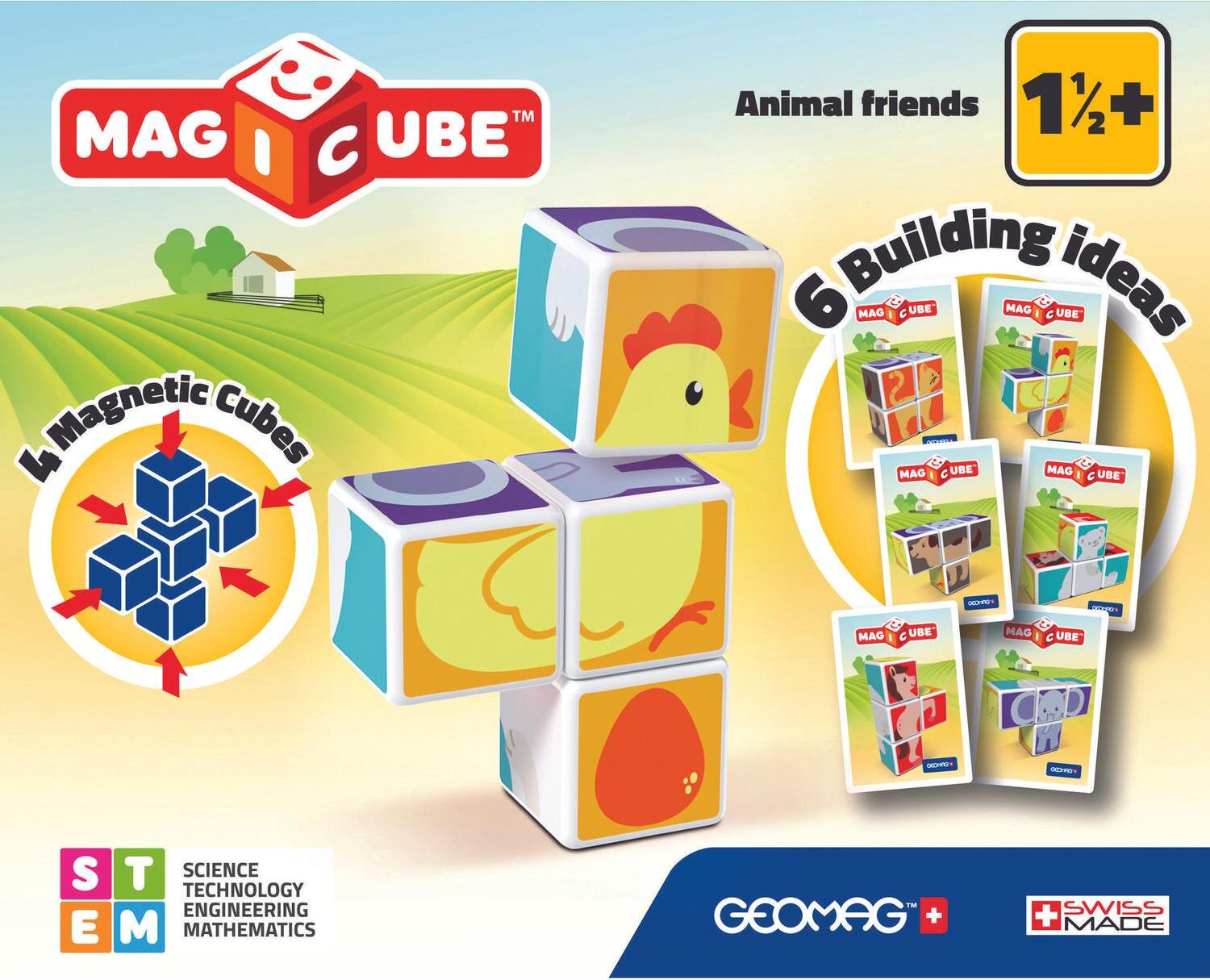 Geomag - MAGICUBE : Amis des Animaux - 4 Cubes Magnétiques pour 6 Constructions Différentes - Jeu de Construction Magnétique pour Enfants dès 18 Mois - Fabrication Suisse - Jouet Éducatif STEM