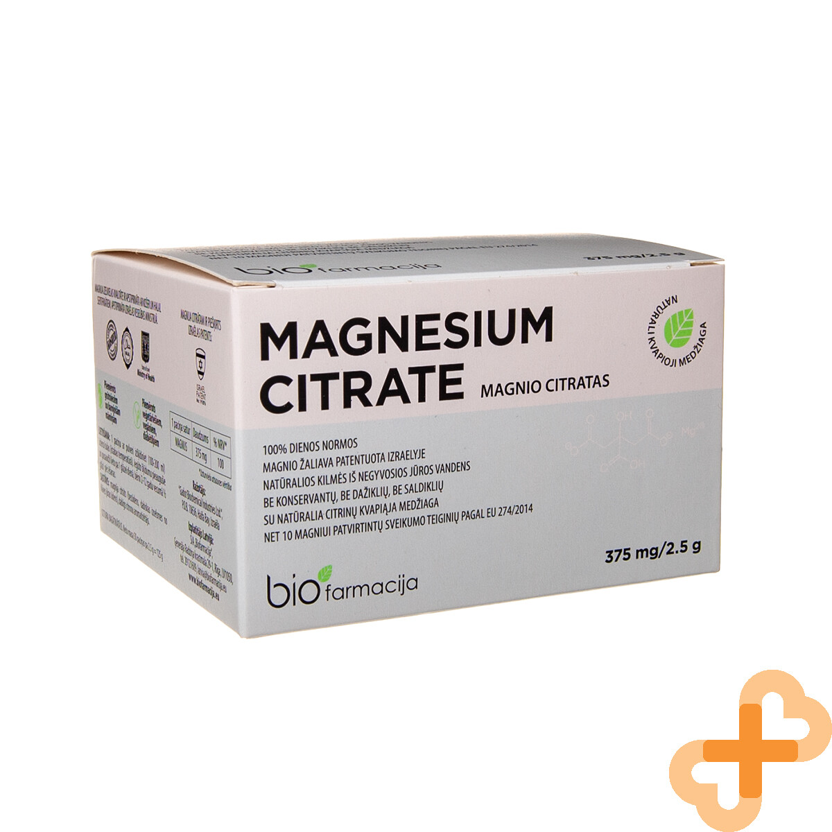 Magnésium Citrate Pure Poudre 50 Sachets Citron Goût Supplément 375mg