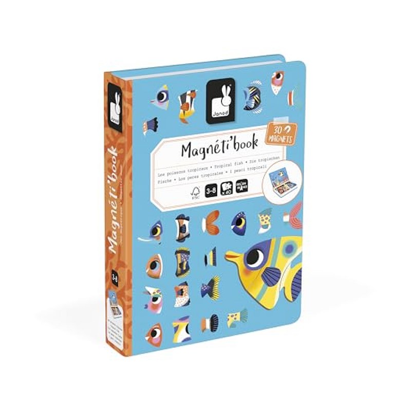 Janod - Magnéti'Book Poissons Tropicaux - Jeu Educatif Magnétique 30 Aimants + 10 Modèles - Jouet Enfant en Carton FSC - Développe Dextérité et Imagination - Dès 3 Ans