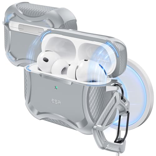 ESR Coque pour AirPods Pro 2/1, Compatible avec AirPods Pro 2/1ère Génération (2023/2022/2019), MagSafe Prêt, Couvercle Magnétique, Protection Anti Chutes avec lanière, Série Pulse, Métallique