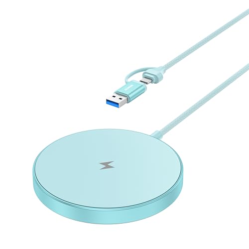 Iphone Induction Charger, Light Blue, 15w Fast Charger Qi2 Certified Magsafe Compatible, Wireless Charger For Iphone 16 Pro 15 14 13 12 Plus, With Usb-C Cable And Adapter Included