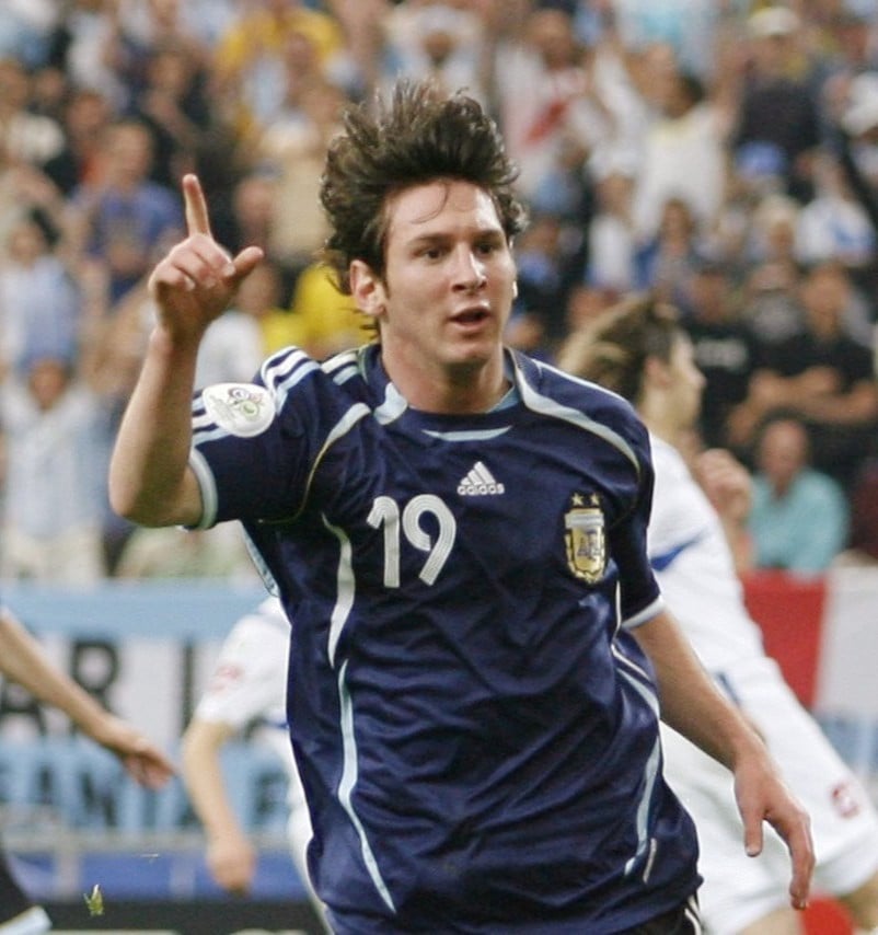 Maillot Argentine World Coupe Allemagne 2006 un Moyen Lionel Messi 19 First Goal