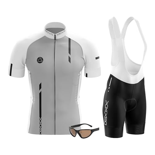 Maillot Cycliste Homme Vêtements d'été, Tenue MTB Jersey avec Cuissard à Bretelle 9D Gel Rembourré, Gants et Lunettes (TYP-3, XL)
