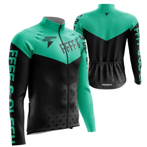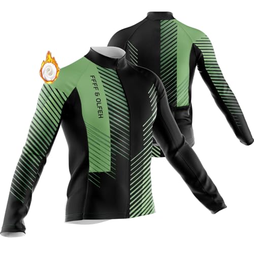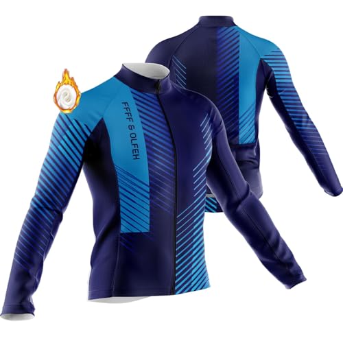 Maillot Cycliste Hiver Homme Vetement Cycliste Pro en Polaire Manches Longue, VTT Maillot Course de Vélo Hiver (17,L)