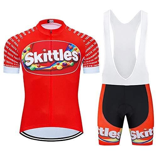 Maillot Cyclisme Kits Homme Vêtements Cyclisme Tenue Cycliste Maillot Cycliste Homme Manche Courte MTB Jersey+ Cuissard à Bretelles avec Coussin de Gel 3D (Rouge,XXL)
