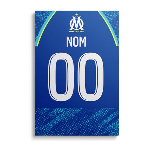 OneTrophy Toile Officielle Olympique de Marseille – Saison 2025/2026 – Décoration Murale Personnalisable avec Nom & Numéro – Made in France - Cadeau supporter OM (Maillot third (bleu azur))
