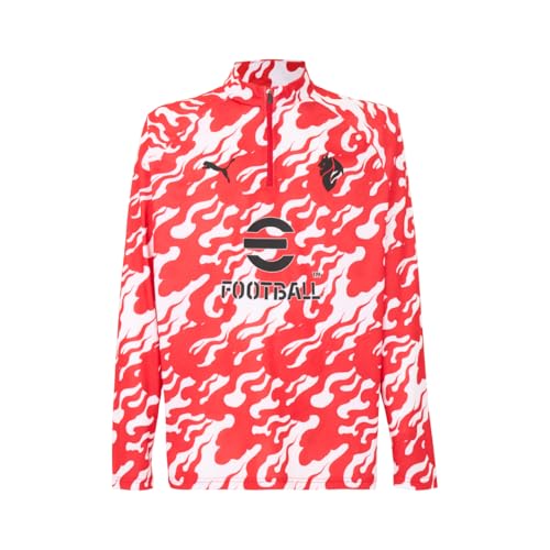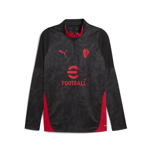 A.C. Milan - T-Shirt Prematch avec Fermeture éclair 1/4, Adulte, Maillot de Football et d'entraînement à Manches Longues, Logo AC Milan et Puma Produit Officiel, Unisexe, Noir ou Blanc