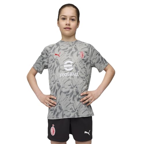 A.C. Milan - Maillot Prematch Enfant, Maillot Course Pré-Match, Saison 2025/2026, Produit Officiel, Enfant, Gris, 16 Ans