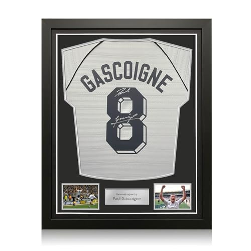 Exclusive Memorabilia Maillot des Spurs signé par Paul Gascoigne. Encadrement de qualité supérieure.