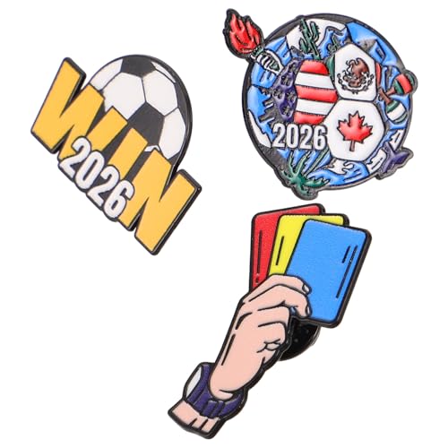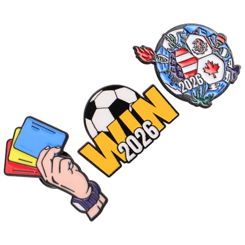 SUPVOX Lot de 3 Broches Football 2026 Métal Solide, Épingles à Motifs Dessin Animé, Décorations pour Maillots, Paquet et Accessoires Supporter, Souvenirs Sportifs Officiels