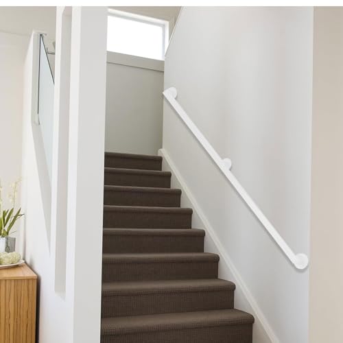 Main courante d'escalier en métal blanc Rampes d'escalier industrielles Rampe d'escalier antidérapante intérieure et extérieure Barre de support de garde-corps Barre d'appui de sécurité(60cm)