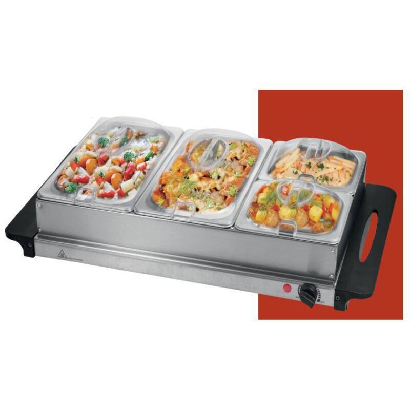ROGONPDK Chauffe-plat, pour buffet, avec 4 plateaux amovibles et plaque de maintien au chaud, 300 W, pour les événements de restauration et les restaurants d'hôtel