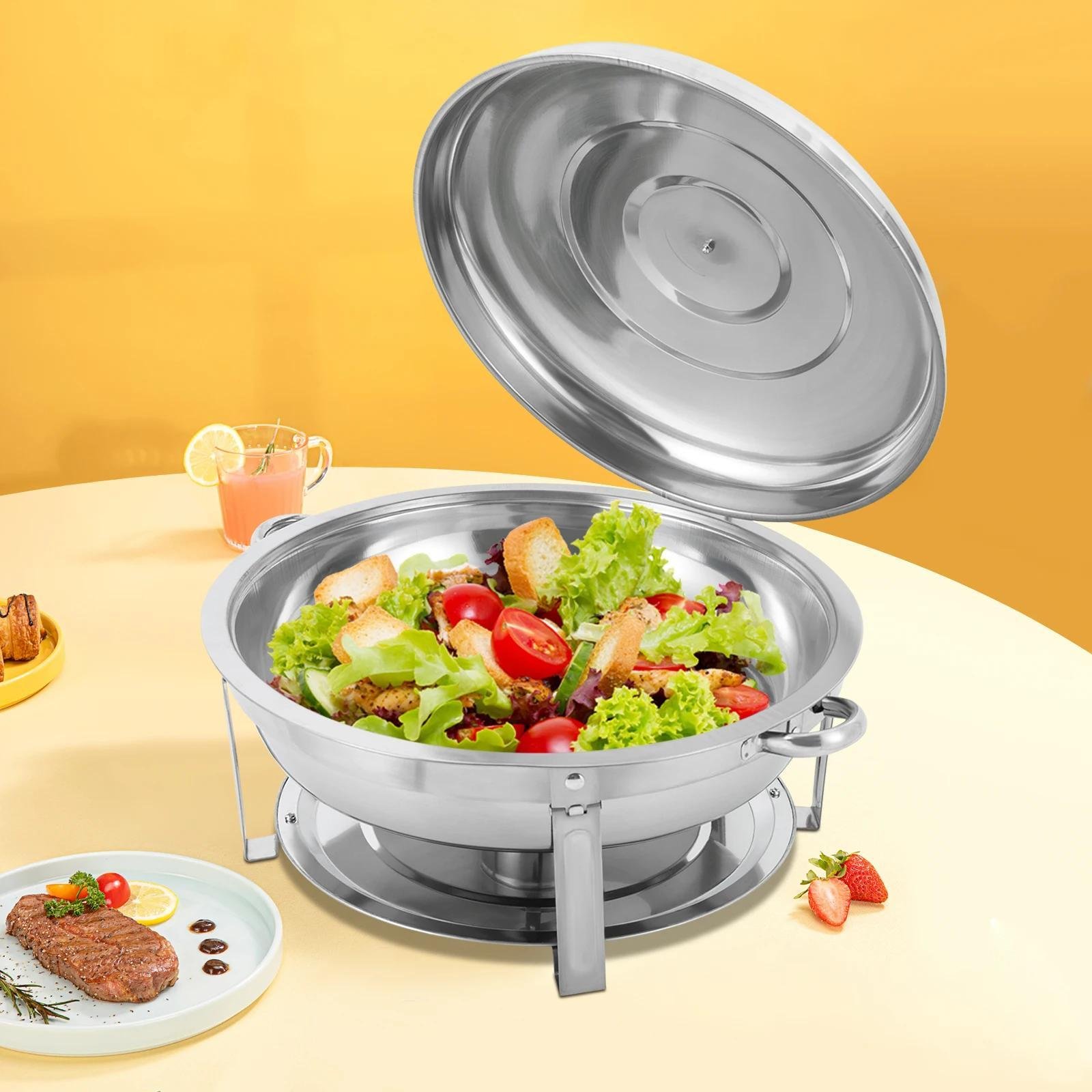 Chafing Dish Buffet Récipient de maintien au chaud rond en acier inoxydable 5 l Chauffe-plat avec couvercle en verre pour traiteur