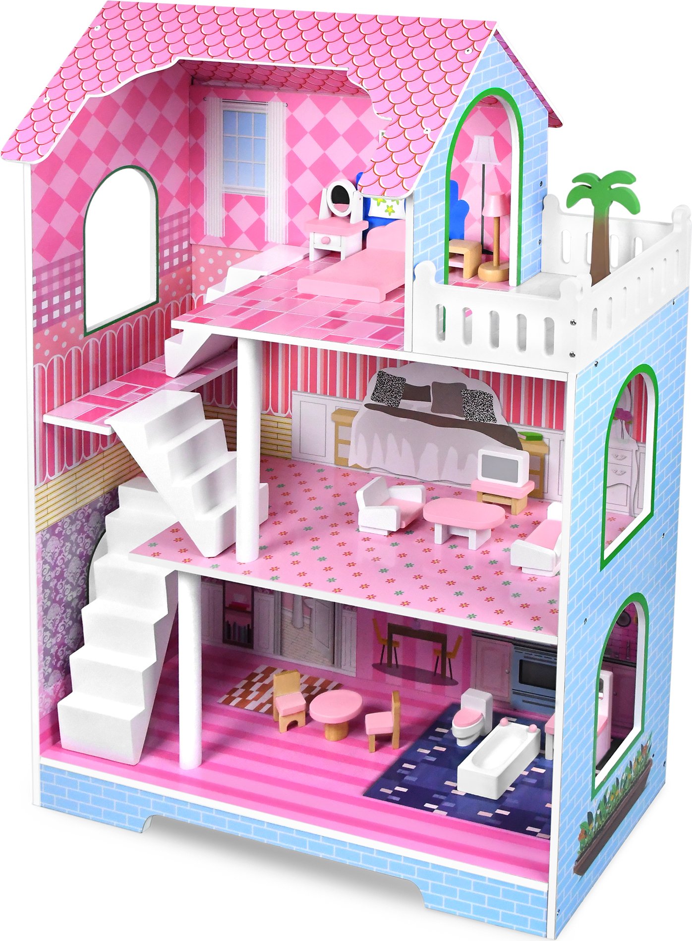 VA-Cerulean Maison de poupées pour enfants Villa de poupées en bois Set de jeu fille 3 étages Maison de Barbie avec meubles et accessoires, 70x30x100cm maisons de poupées pour enfants (type B)