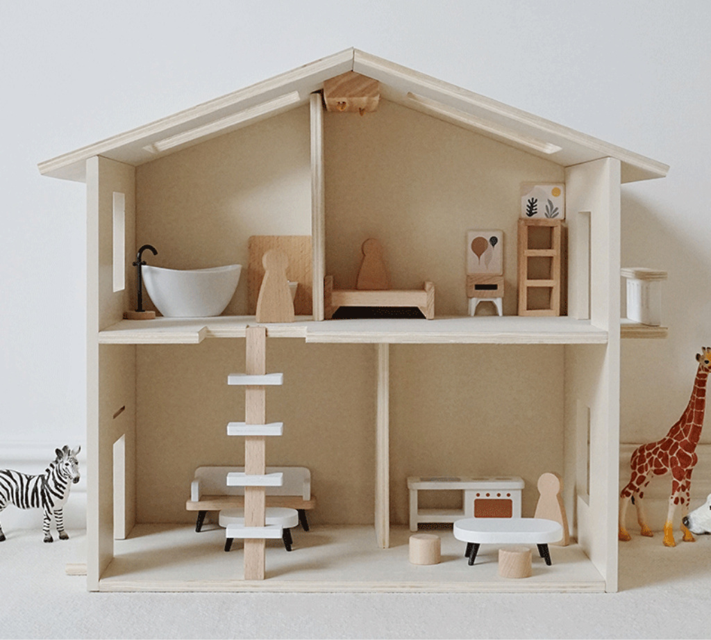 Buxibo maison de poupées en bois - maison d'enfant pour poupées avec meubles - maison de jeu en bois - maison de Barbie