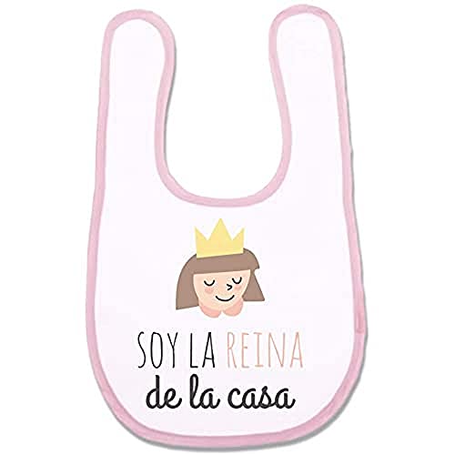 Supermolon - 02871 - Bavoir - Soy la Reine de la Maison - Bavoir Bébé avec Velcro, Rose Pastel, Mixte