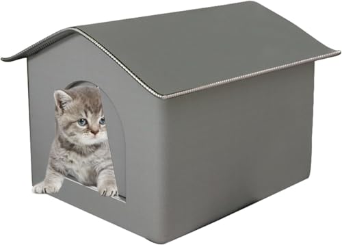 Miawi Abri Chat Exterieur, miawiabri Maison pour Chat Exterieur Hiver Pluie isolé, L'abri Qui Chauffeet Protège Chats sans Foyer (Gris,L)