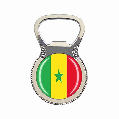 Aimant de réfrigérateur de style drapeau national du Sénégal - Souvenir de voyage - Décapsuleur de bouteille de bière - Décoration pour la maison, la cuisine, le réfrigérateur