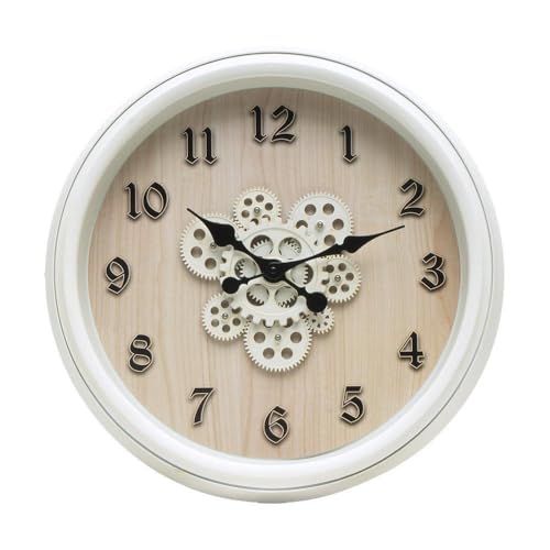 Zarivy Horloge Murale Blanche et hêtre 50 x 50 x 6 cm avec Engrenages et Mouvement, idéale pour décorer et Donner du Style à Votre Maison.